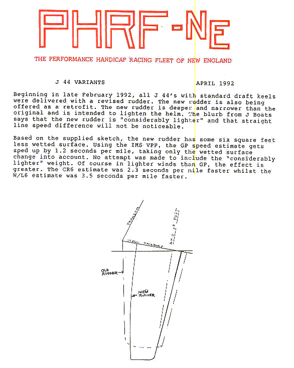 Due to measurement vagaries, the standard hull for the J44 with the new rudder has slower IMS speed estimates